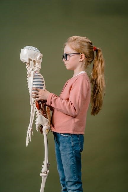 The manual guides learners through analyzing bone morphology‚ classifying different bone types (long‚ short‚ flat‚ irregular)‚ and understanding their functions in support‚ protection‚ and movement. Practical application involves assembling skeletal models and identifying individual bones.